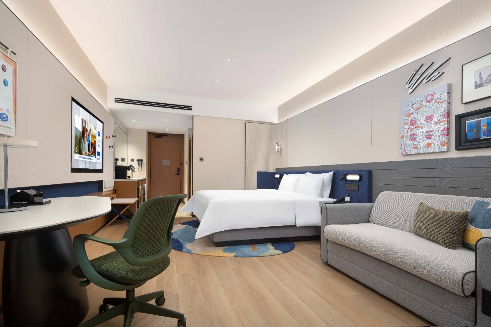 以人为本,产品为王。从1.0版本到最新发布的「欢悦」版产品 ,希尔顿欢朋坚持公区“一店一设计”,为宾客打造更具归属感和探索乐趣的在地空间;以平均每1.5年进行一次产品革新的速度,以“小细节 ,大不同”为理念,通过色彩美学进阶 、空间设计优化、智能科技焕新,持续为消费者带来温暖、可靠的高品质住宿体验 ,进而让投资价值稳定兑现 。